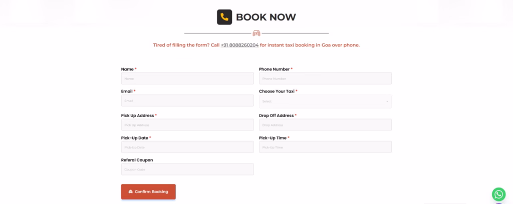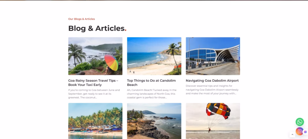 In on-page SEO, we found duplicate H2 headings, missing meta keywords, and generic alt tags. Additionally, the website did not have landing pages targeting search intent keywords like “Goa Airport to Calangute Taxi Price.”